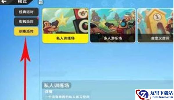 2、在游戏模式选择界面,选择【训练派对】模式。