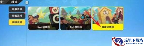 3、进入训练派对模式后,点击【自定义房间】选项。