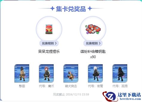 2、通过收集齐不同的卡片组合,可额外兑换所对应的奖励【缤纷补给箱钥匙x90】、【呆呆龙捏捏乐×1】。
