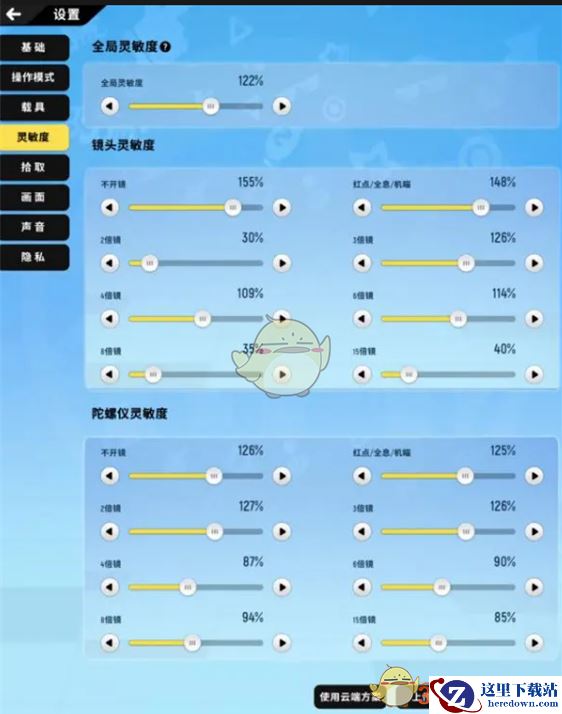 调整全局灵敏度、镜头灵敏度和陀螺仪灵敏度,支持云端同步。