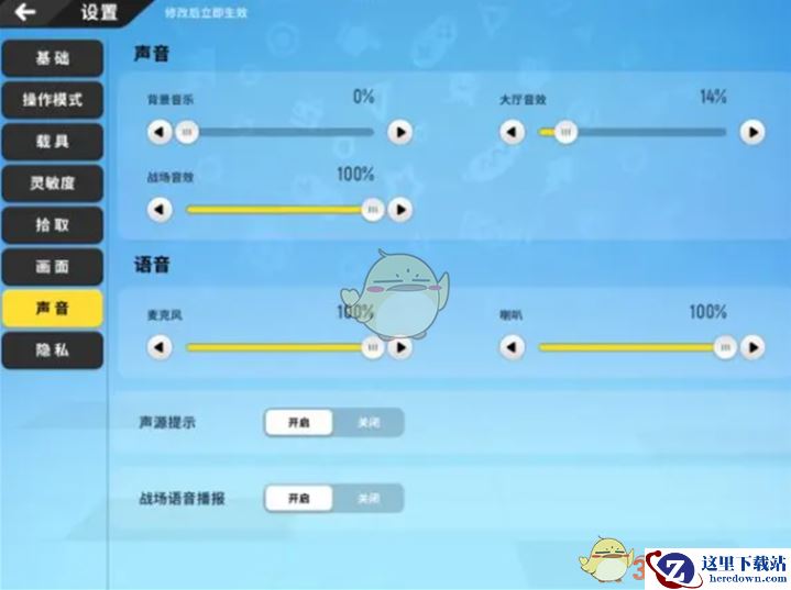 调整背景音乐和战场音效,建议开启战场音效和声源提示,增强战斗感知。