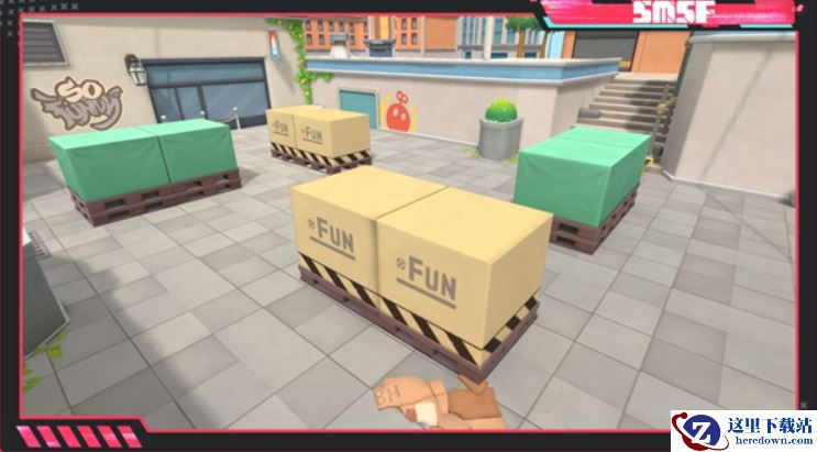 这张地图充满涂鸦和纸箱,肠肠可以在纸箱后面躲藏,等待出击机会,也可以大胆进攻,给敌人一个猝不及防的打击。
