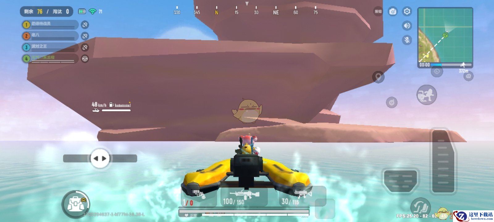 2、在绿洲地区前期捡到信号枪,为防止“一发穿云箭,千军万马来相见”的情况或者是队友在附近,害怕被队友抢装备。这时可快速去绿洲岸边找船,前往海域的岩石上方,再打空投。