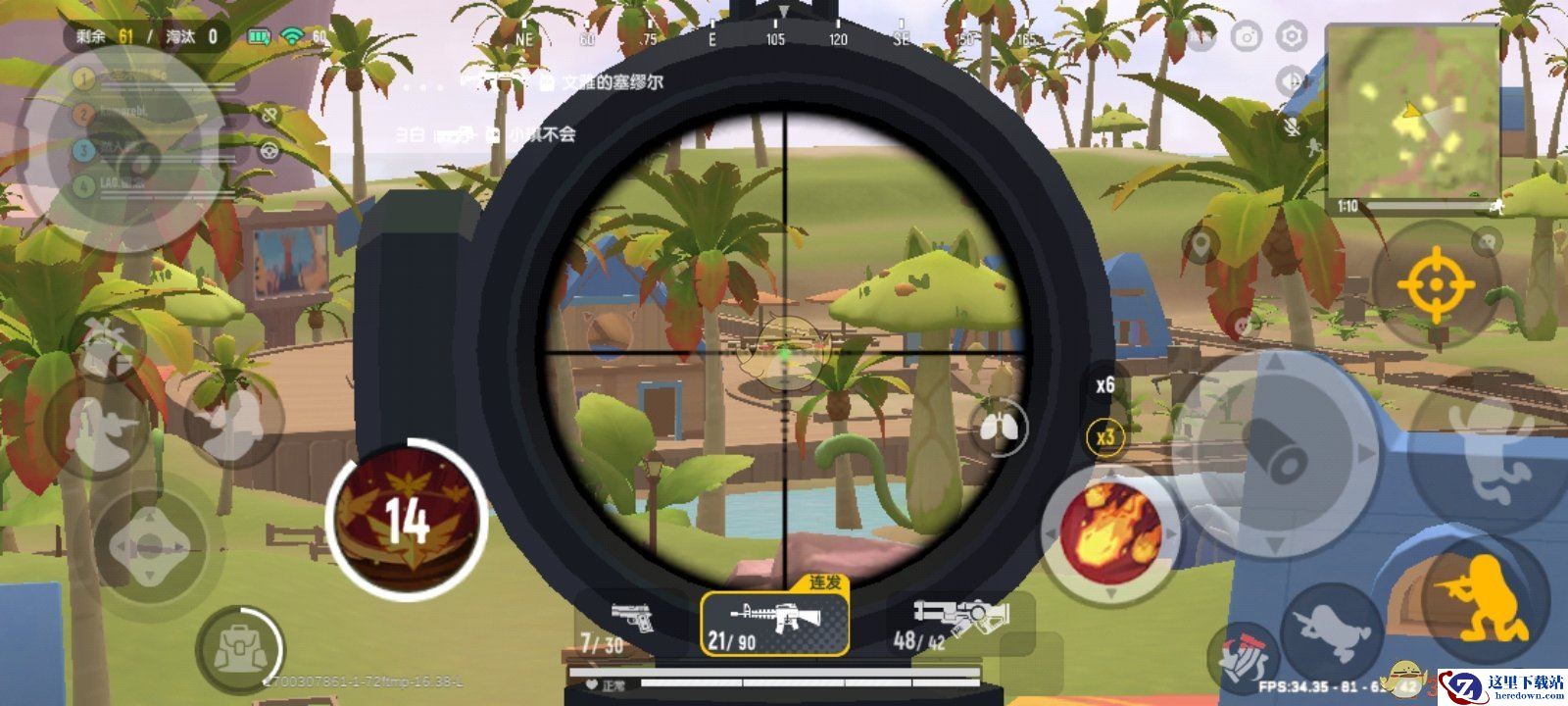 2、占领①号房区,①号房区属于农庄房屋里地势最高的。利用房顶视野解决②号区域内的敌人。