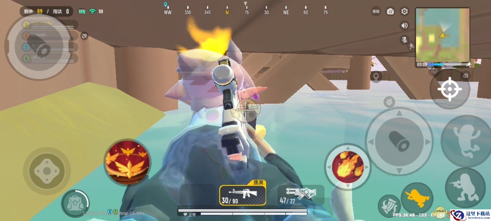 位置在②号区域水池的木桥底下,可以游到里面,趴着苟分。一般人发现不了