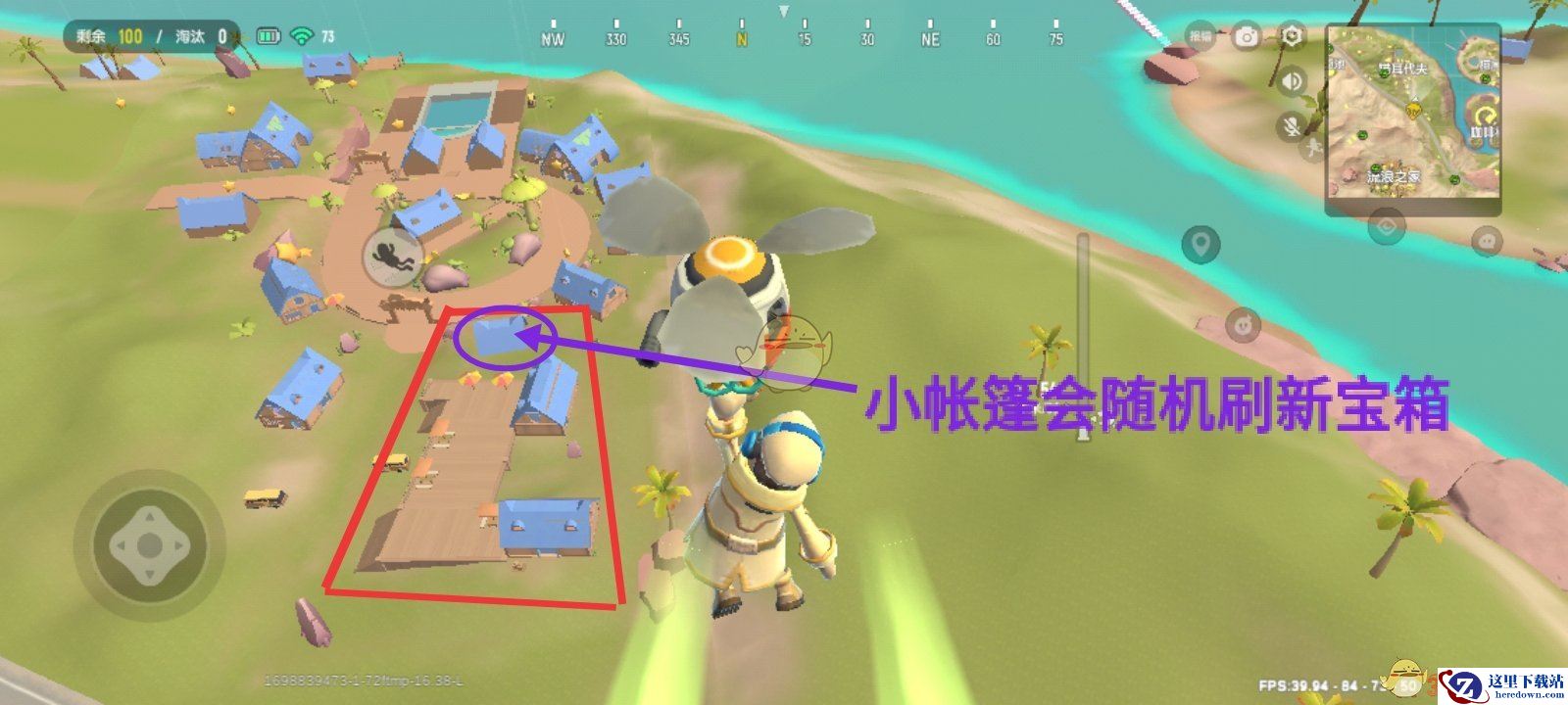 1、优先选择靠近路边的房区进行发育。人少情况下可先跳小帐篷捡个宝箱。