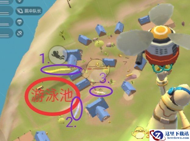 2、此资源点有处泳池,泳池旁有宝箱刷新及泳池周围房屋分布较密集(这些地方跳的人相对多些)
