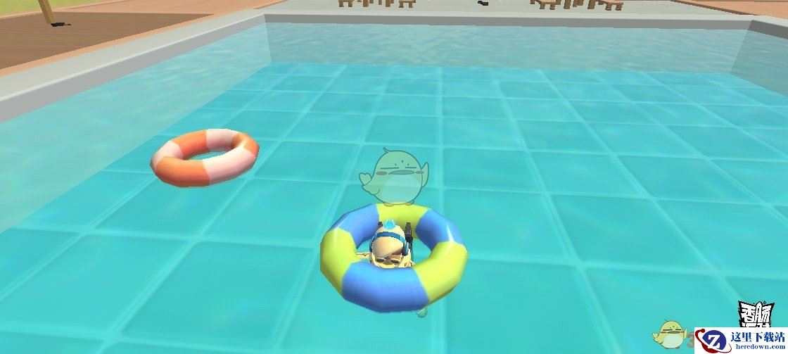 4、温馨提示:千万不要落水,尤其是别跳泳池上方的两个游泳圈里面。跳进去就出不来了,直接被牢牢锁住。也不能持枪,只能等着挨打或毒死。