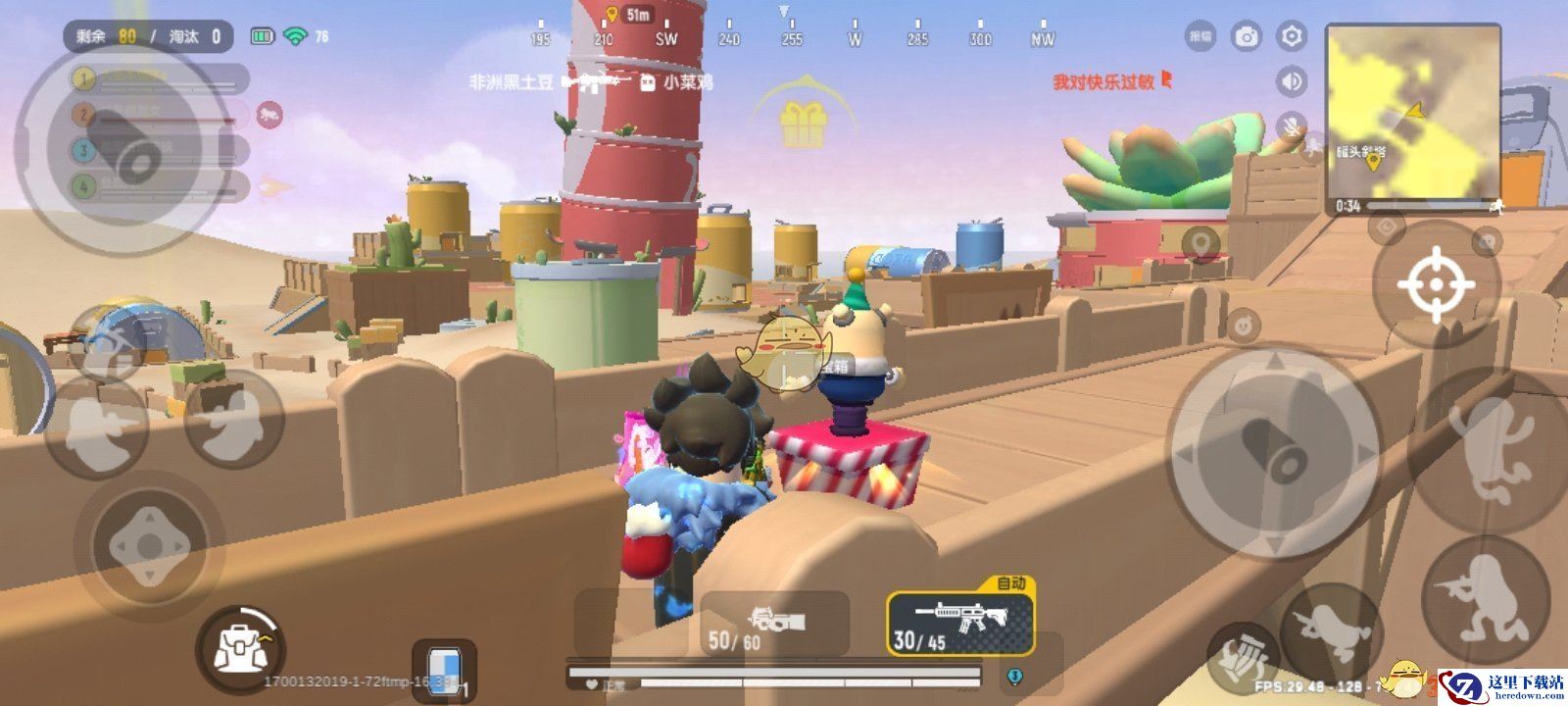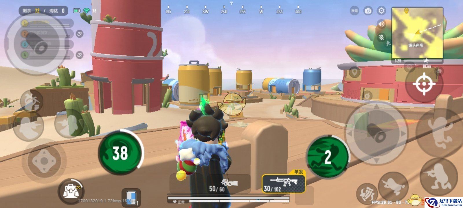 1、在高台区域利用好周围的木栏充当掩体清理对面罐头小屋的敌人。