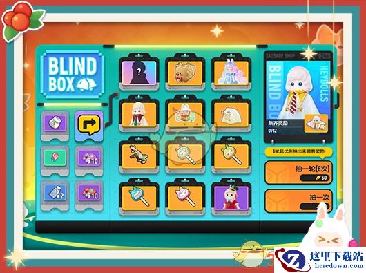 在香肠派对的商城中参与盲盒抽取活动,有机会获得「HeyDolls圣诞告白」联动盲盒主题皮肤。