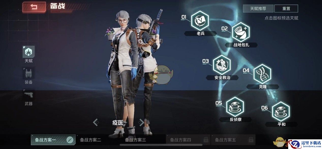一级老兵,提升前期的打钱能力;二级店战地包扎,三级点安全救治,四级点克隆,都是为了提升疫医的生存能力;五级点反侦察,加强地方信息获取能力;六级点平和,加快技能冷却时间,提升疫医的灵活性。