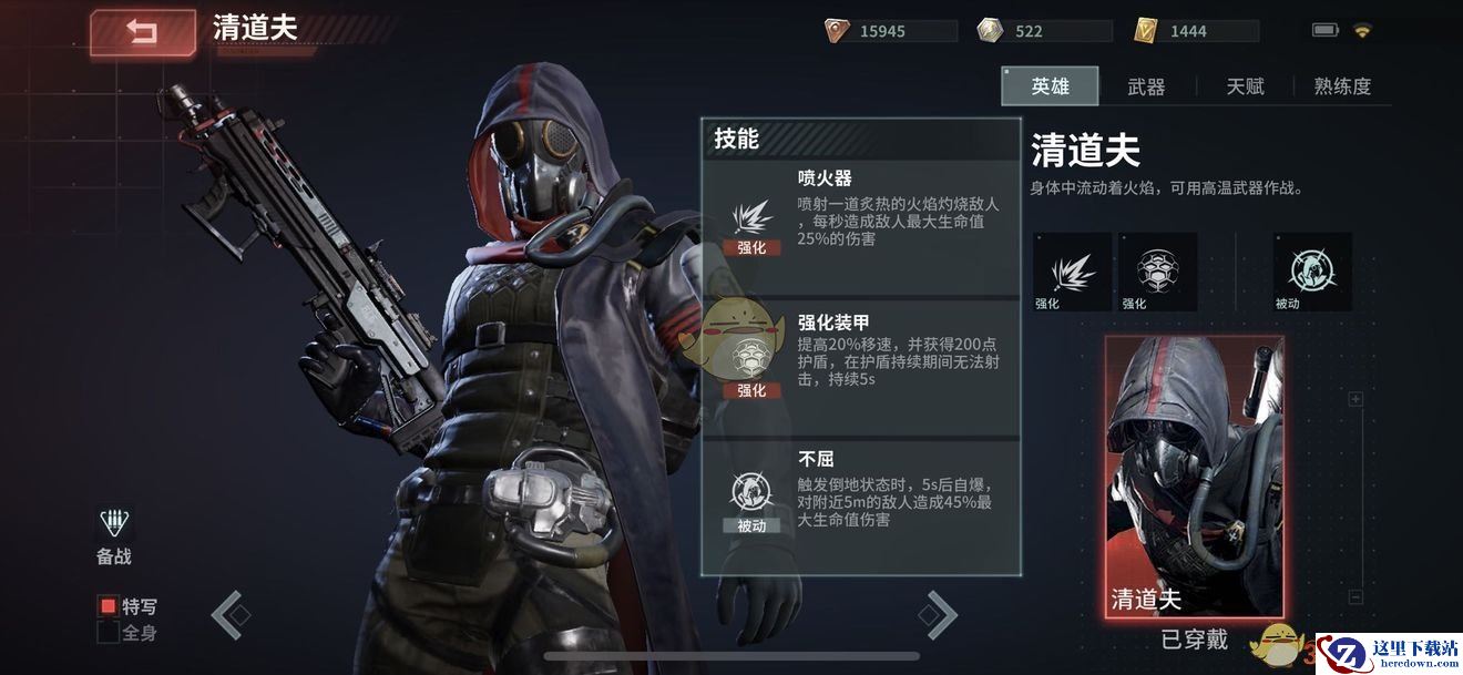 一技能:喷火器。