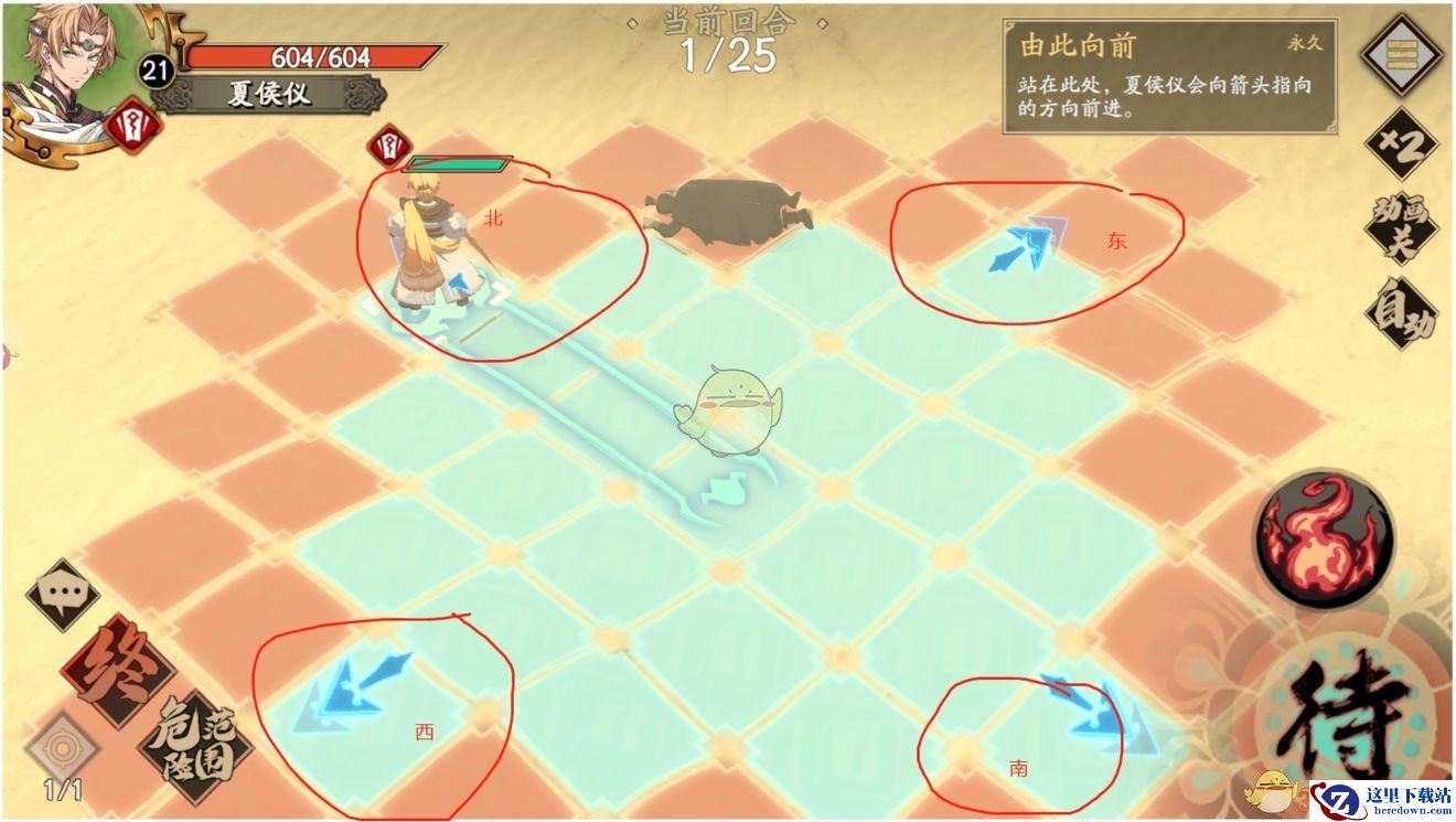 这个给出答案应该很简单了,可惜游戏没指出东南西北。大概以后会修正吧。下边指出东南西北。