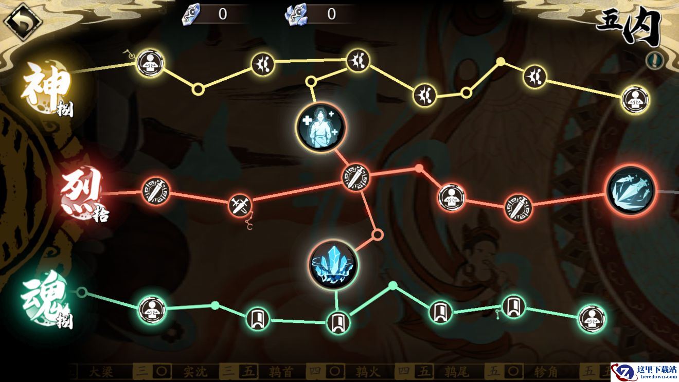 《天地劫》系列五内系统在手游中经典重现,“神魔烈魂迅”五内。每个角色都有五内中的三种,一条主修,两条辅修,彼此间互有影响。综合提升对应的点数,以此来增强属性、习得绝学。