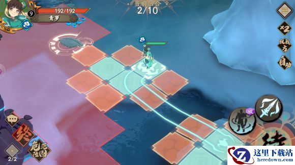 1、因为阿良腿短(喂喂喂!)走的比青萝慢一回合,所以不着急踩机关,可以原地等一回合,不然过去的话会被小怪攻击到。