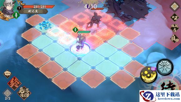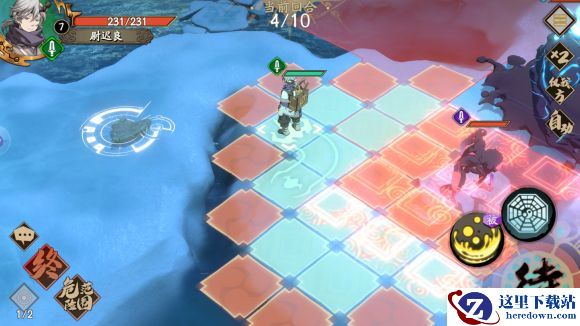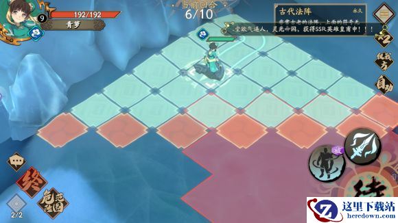 2、如图所示,阿良一定要站在这个地方,不能往前再站一格,会进入怪物的仇恨范围,是个小坑哦,要注意啦。站这个位置正好下回合可以踩蘑菇。