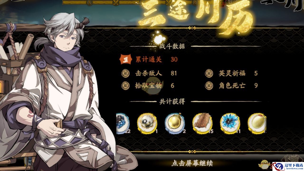 4、完成所有三途川关卡挑战后可以在结算面板看到所有获得的「资源奖励」和「宝物奖励」。