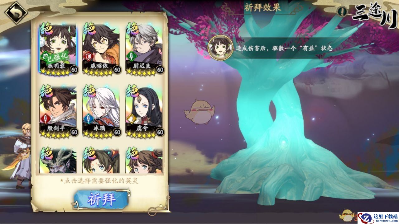 1、「神树」:会给予英灵一个祝福增益,在本次三途川中有效,少侠可以根据自身阵容选择受祝福的英灵。