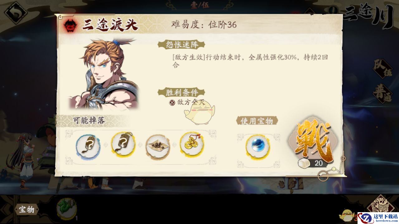 4、「宝物」:有些宝物能够帮助抵抗怨怅迷阵,有些能够复活阵亡的英灵,有些可以提高英灵的部分属性。