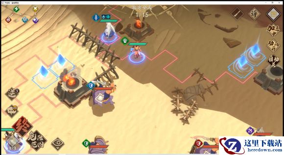 2、根据剧情走,地图上有三个火盆,我们只要把火盆里的火灭掉,就能很轻松的过关。