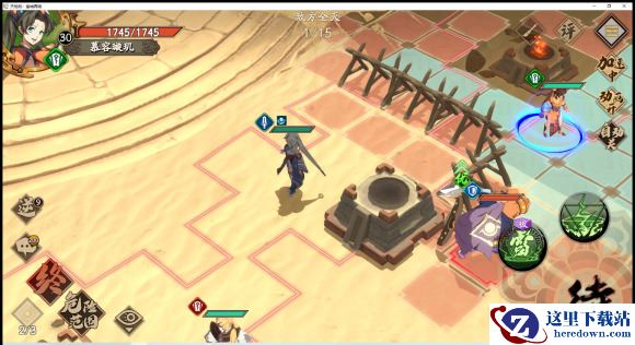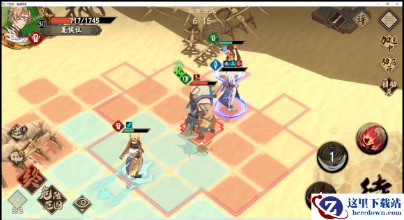 4、第一回合,冰璃用技能飞过去灭火,夏侯仪往下走,反正不怕掉血,勾引怪来攻击,运气好能反击死小怪,慕容璇玑往上走