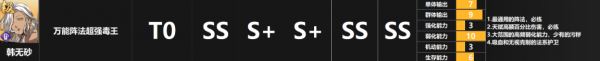简评:最通用的阵法,必练天赋高额百分比伤害大范围的高频弱化能力吸血和无视克制的法系护卫
