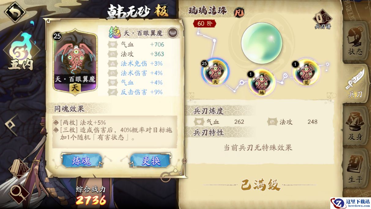 【百眼翼魔】:作为把制造有害状态当成核心打法的韩无砂,与魂石【百眼翼魔】十分搭配,三枚同魂效果有几率多施加1个“有害状态”,范围伤害技也能触发该效果。【百眼翼魔】+天赋“蛇毒”+【魔天之阵】可以做到一次群体伤害施加4个有害状态,连驱散奶太渊隐逸的【神氛化法】都无法一次驱散干净。