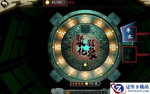 2、消耗10点初元可进行一次化象;消耗100点初元可进行十次化象,每次化象会根据不同的卜卦结果,获得随机的魂石。