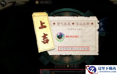 1、累计化象10次,必卜得上吉,获得随机绝品魂石。累计化象10次后界面下方的进度条将清空并从0开始重新累计。