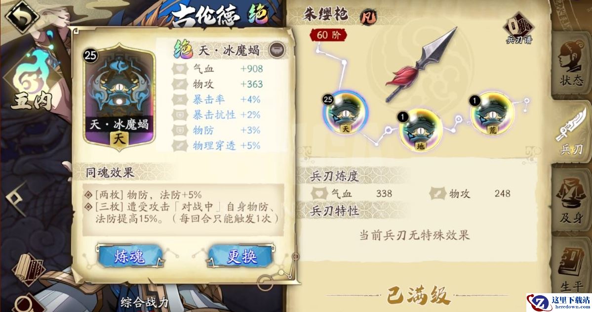 备选[冰魔蝎]:虽然三枚的同魂效果每回合只触发1次,但在游戏中[冰魔蝎]比[咒石兵]前期产出率更高,特别是“绝品”的[冰魔蝎]比较早期就会获得,更容易获得的“绝品”魂石基础属性能够增加更多血量、防御,此外可以从更多产量中挑选更好的随机属性。