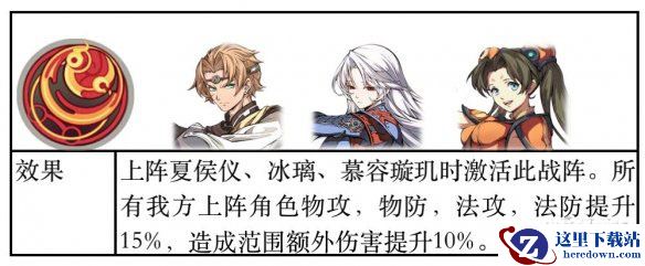 夏侯阵法虽然条件苛刻(固定三人)但是优秀的范围伤加成配合3个强力输出角色,即使三测被削弱了范围伤害减伤,依旧是一个非常强力的阵法。