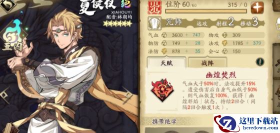 夏侯仪是生存能力较强的咒师,炎系单体技能和群体技能都同样出色,天赋能够在受到重创后瞬间回满血量并获得能力提升,而且还是游戏中为数不多能制造地形的英灵,在阵地战中作用突出。
