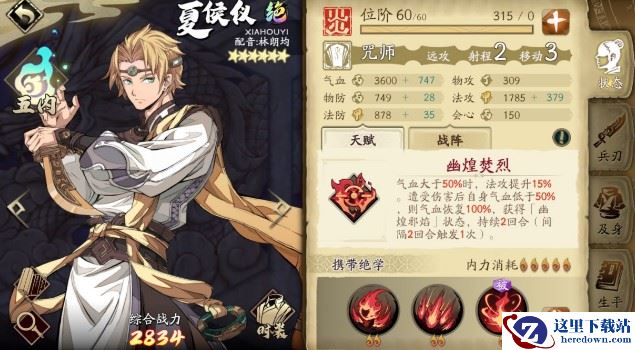 夏侯仪是生存能力较强的咒师,炎系单体技能和群体技能都同样出色,天赋能够在受到重创后瞬间回满血量并获得能力提升,而且还是游戏中为数不多能制造地形的英灵,在阵地战中作用突出。