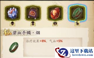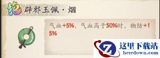 最适合衣服的饰品当属这枚气血+5%,气血高于50%时增加15%物防的绝品[碧血玉佩],在对抗物理攻击时作用明显。