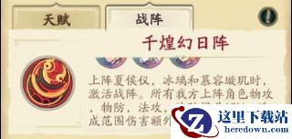 夏侯仪有自己的战阵[千煌幻日阵],战阵的特效能额外提高10%范围技能伤害,再配合都是群体伤害技能为主的队友效果最好。当然此阵的最大缺点是需要3名指定的绝品英灵组成,收集难度较大,是属于后期的战阵。