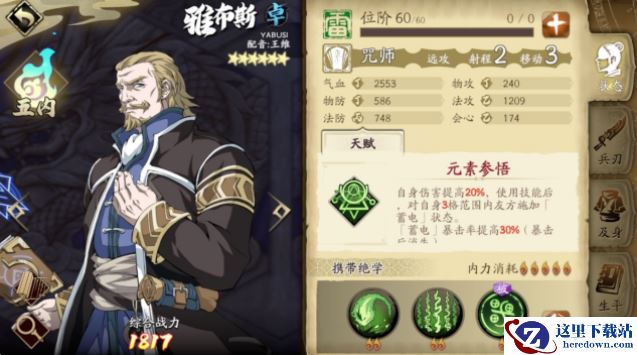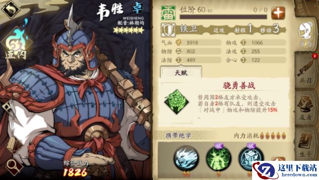 3、其他铁卫需要消耗2火的绝学韦胜作为被动全程自带,作为纯粹的肉盾相当实用,虽然基础属性稍低一些,但只要在注意属性克制的情况下就不会被秒。