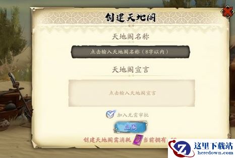 2、可以设置一个自己喜欢的阁名和宣言,并且选择是否需要审核加入天地阁。