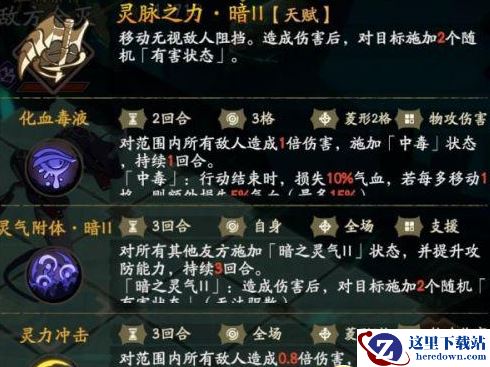 灵脉之力·暗:这个BOSS无法被围住,主要需要上阵拥有驱散能力的角色来对抗他的DEBUFF