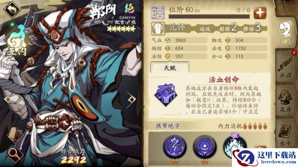 【血肉强化】是郸阴的必带技能,可以大幅提高一名队友的物攻、法攻、物防持续3回合,给我方输出最高的人物