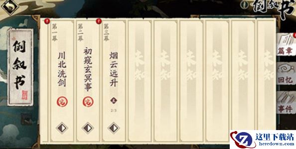 书阁-倒叙书在完成第一幕主线剧情后便可逐步开启,包括:“篇章”、“回忆”、“事件”功能。玩法如其名,倒叙书就是让玩家回到已通关的关卡回顾剧情或完成隐藏任务的。