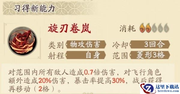 ※大范围短CD的AOE【旋刃卷岚】,配合高暴击下的天赋固伤和【流火】的燃烧,应该能有效压低血线。
