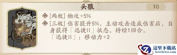 【头狼】:常驻较低增伤,打人就能+2移动力,可以让羽士更灵活。