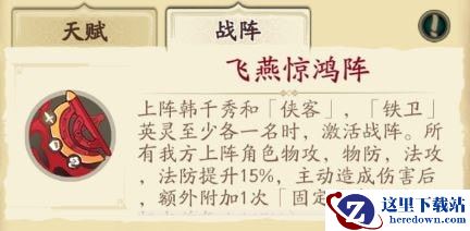 ※改版后的阵法【飞燕惊鸿】只需要一个铁卫一个侠客,都比较常规,很容易触发。
