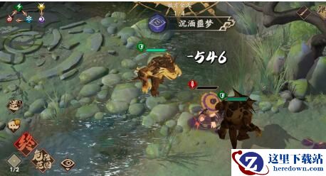 关卡开始,我们控制下方的“夜魅”走至“豪侠”的下方;(作用是当上方的“夜魅”释放强击技能推动豪侠时,可以截住豪侠刚好落在沉湎噩梦中)