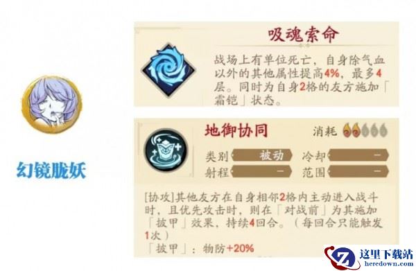 那么幻镜胧妖的定位是强攻系法师,在进攻的同时也能为身边的队友提供【霜铠】的辅助,另外在升级到40级之后幻镜胧妖还可以开启【地御协同】的加防效果,考虑到目前的火系boss大部分都是物攻的状态,这个效果在日后也会有一定的施展空间。