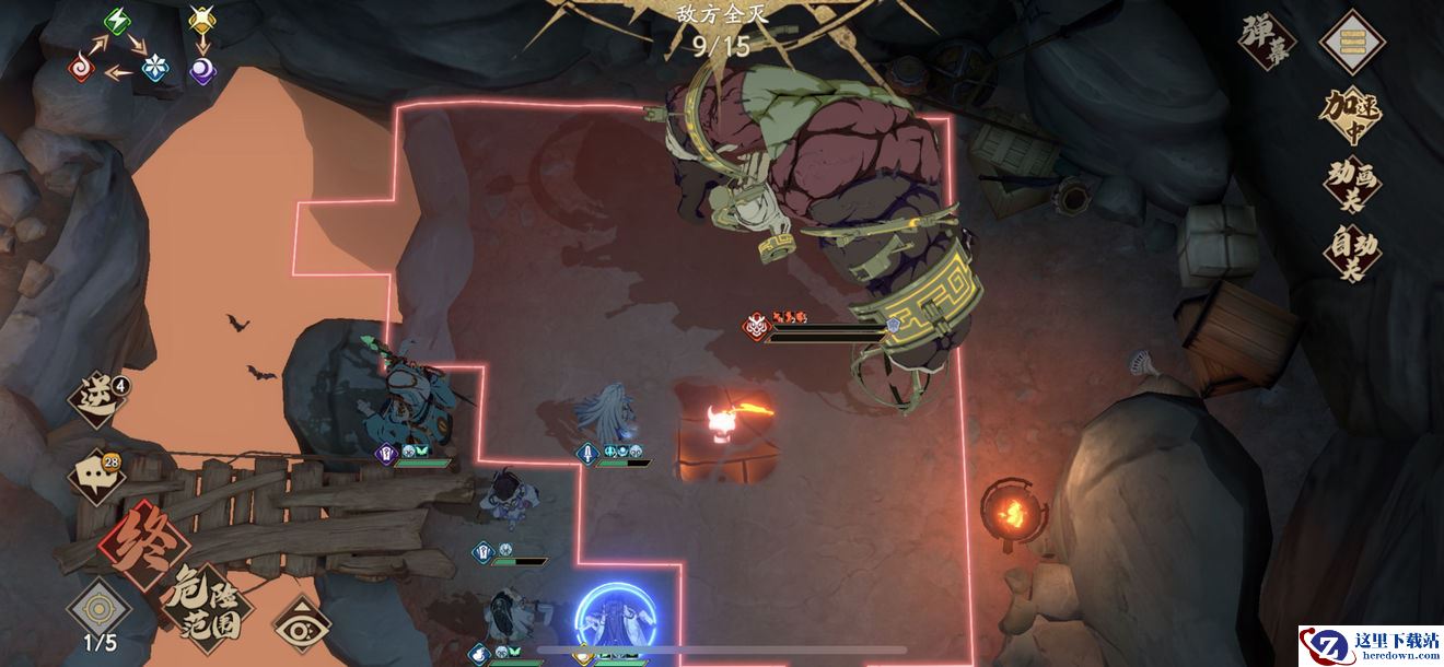 左路:封寒月先手走到极限距离放aoe砸一下两只小怪,然后被动走出仇恨范围,太渊边缘ob,第二回合清掉小怪。