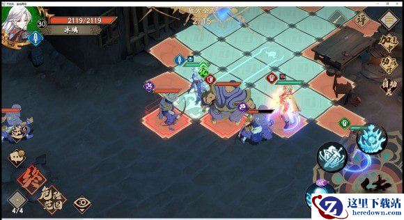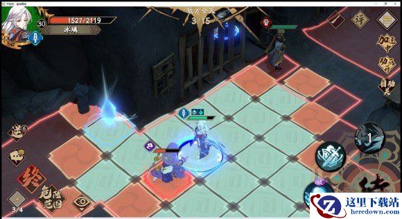 4、第二回合冰璃秒火属性小怪,然后砍一刀弓箭手,夏侯仪往上走,用AOE砸死弓箭手。