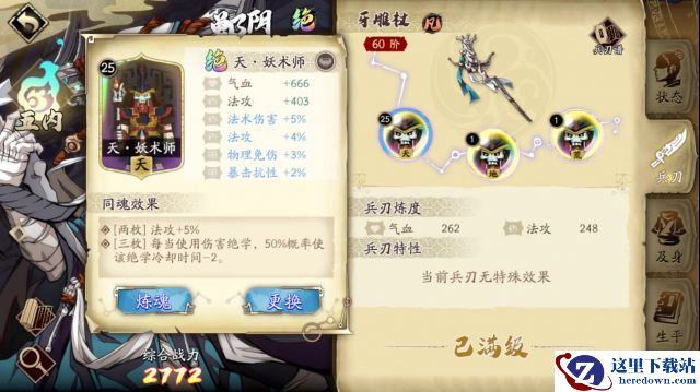 妖术师的三枚同魂效果有50%几率当使用技能造成伤害时,让该技能的冷却CD-2.,能让3CD的群体伤害技能[冥幻之阵]只要1CD,让郸阴的群体禁疗或者群体封咒更加频繁的扰乱对手。