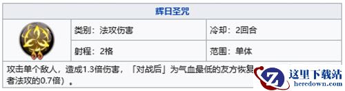 其中上路的主要技能,也就是辉日圣咒,可以让你在攻击敌人之后,然后回复气血最低的友方血量,并且神念还可以在自身气血高于90%的时候,然后提高法术攻击和法术防御。