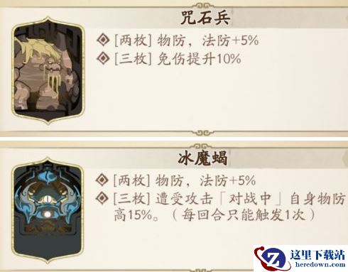 其中,更为推荐选择3枚提供免伤提升效果的咒石兵,可以稳定减少鹿昭依承受的伤害量,不管在多小怪的副本还是BOSS战副本中,适用性较好。